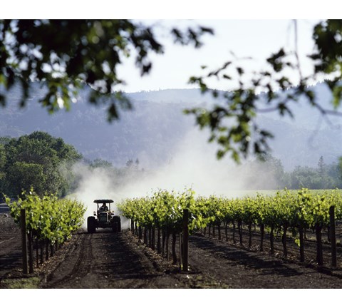 Tractor in a field, Napa Valley, California, USA