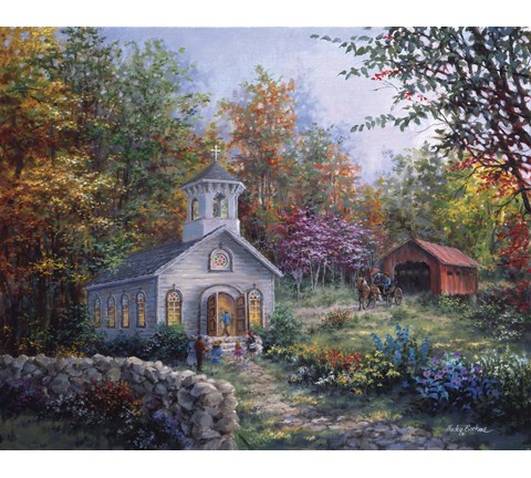 Rustic country home decorations often feature barns, houses and churches. These subjects are some of the most popular types of country artwork.